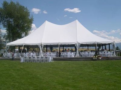 Hold your event under the "Big Top" or beneath the blue Montana sky. The Ponds at Dry Creek features 2400 square feet of covered pavilion floor space with over 1100 square feet of adjacent deck to use as you wish.